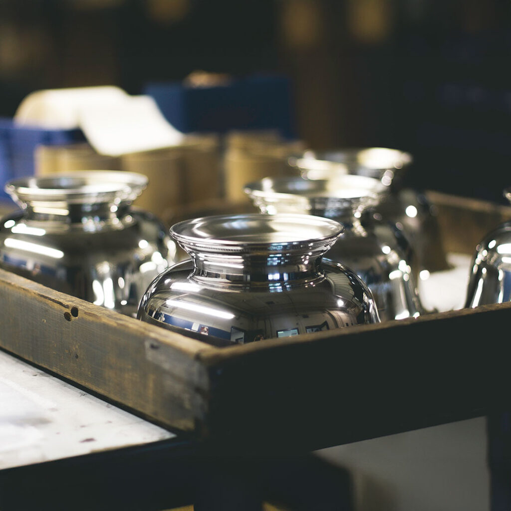 Based in Easton, Maryland, our factory is home to skilled artisans who spin, cast, polish, and engrave each piece by hand. We take pride in combining traditional techniques with a deep commitment to quality, resulting in heirloom pieces that are as beautiful as they are lasting.