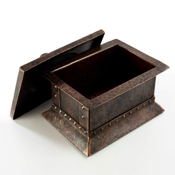 For the discerning collector, few names resonate like Joseph Heinrichs—master metalsmith of the early 1900s whose copper forms once lined the halls of Tiffany & Co. and the lobbies of the world’s grandest hotels. Our ashtrays and boxes are not reproductions, but reverent tributes—hand forged in heavy copper, detailed with Heinrichs’ signature strapwork and rivets.