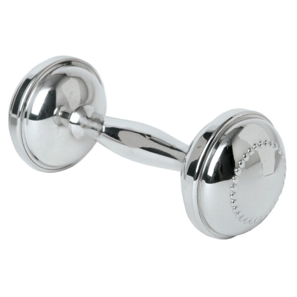 The pitter-patter of little feet brings the jingle jingle of little rattles.  This fun and adorable beaded pewter dumbbell rattle is everything you want in a baby gift and more since it’s handmade right here in the U.S.A.