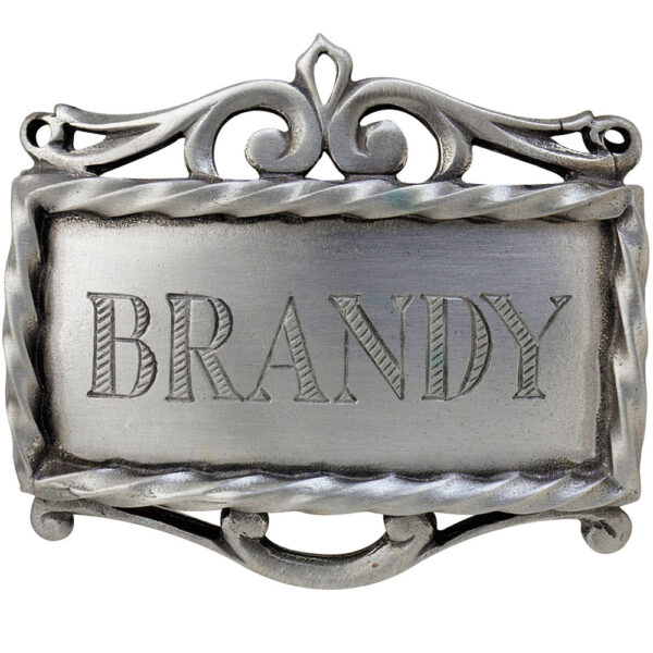 There is nothing fancier for the home bar than a collection of handsome decanters with their own labels. Grab this handcrafted pewter brandy decanter label to elevate the look and turn some heads!