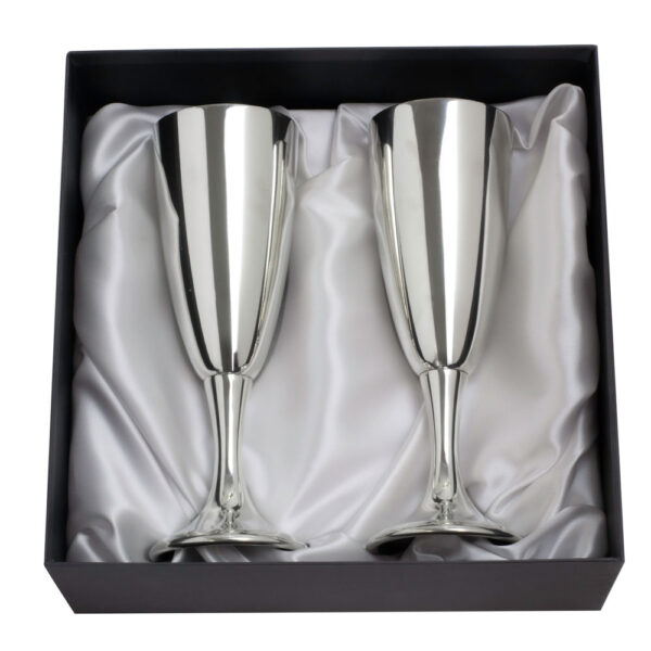 A beautiful couple deserves beautiful vessels for their wedding toast. These elegant pewter champagne flutes will add a refined touch to the wedding toast and become a great pair for every anniversary toast to come.