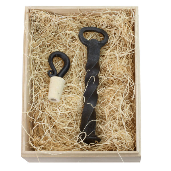 Times may be tough, but Forge On!! This handcrafted forged opener and wine stopper set is made by hand crafted over an open flame. They are both forged from old, recycled railroad spikes, therefore making this both a unique and responsible choice.