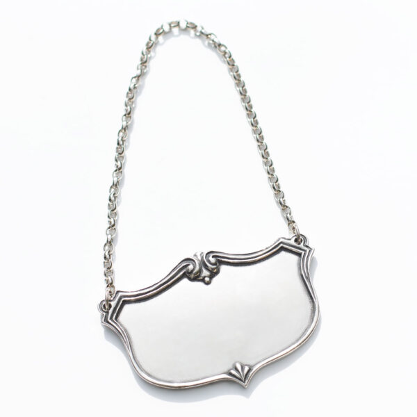 Elevate your bar with a personalized handcrafted large pewter decanter label – add a monogram or the name of your very favorite spirit. Handcrafted and customizable, this one will be right at home on your most cherished and obscure one in the collection.