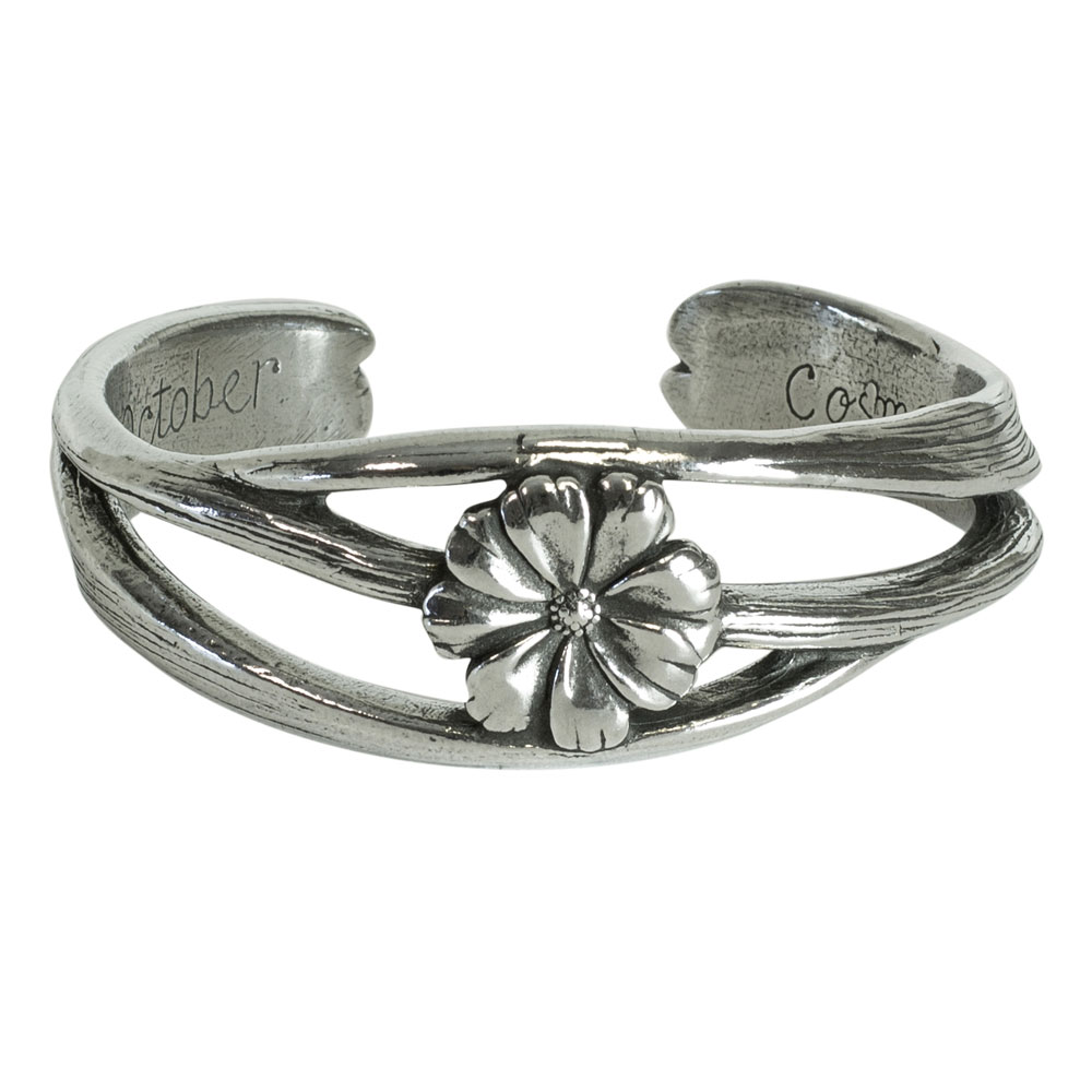 Gorgeous flowers are right for every occasion! Celebrate the month of birth or favorite flower with this lovely handcrafted open branch cuff bracelet. October’s flower is the Cosmos, which symbolizes comfort and protection.