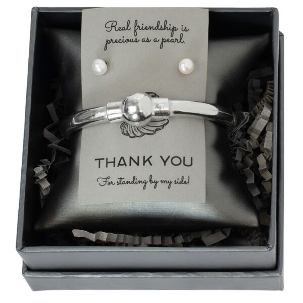 The gorgeous handcrafted pewter pearl design bracelet and pearl stud earrings are the perfect  bridesmaids’ gifts, so show your ‘maids some love for standing by you on your wedding day! The included thank you message says “Real friendship is as precious as a pearl”.  What could be sweeter?