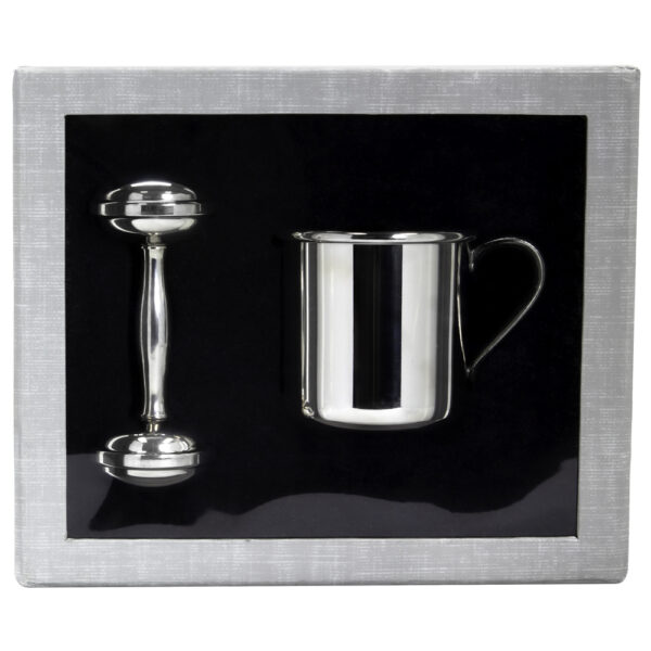 Something practical and something for fun! This sleek, straight baby cup pairs perfectly with the adorable, jingly dumbbell rattle. Additionally, both are artisan-made with fine pewter right here in the U.S. What could possibly make a better baby gift set?