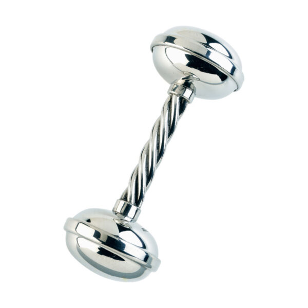 The pitter-patter of little feet brings the jingle jingle of little rattles. This fun and adorable pewter twisted handle dumbbell rattle is everything you want in a baby gift and more since it’s handmade right here in the U.S.A.
