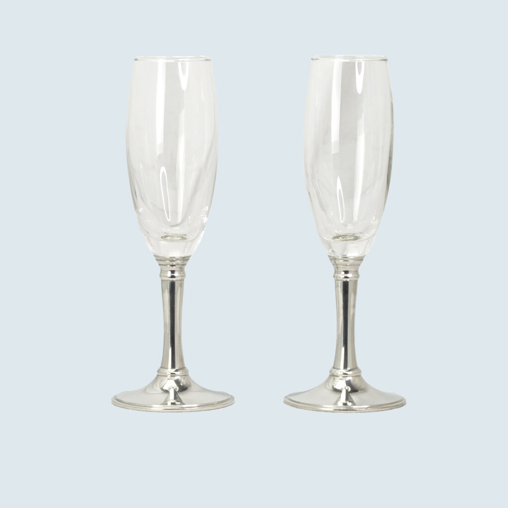 When only the finest will do-celebrate with handcrafted flutes with beautiful pewter bases.
